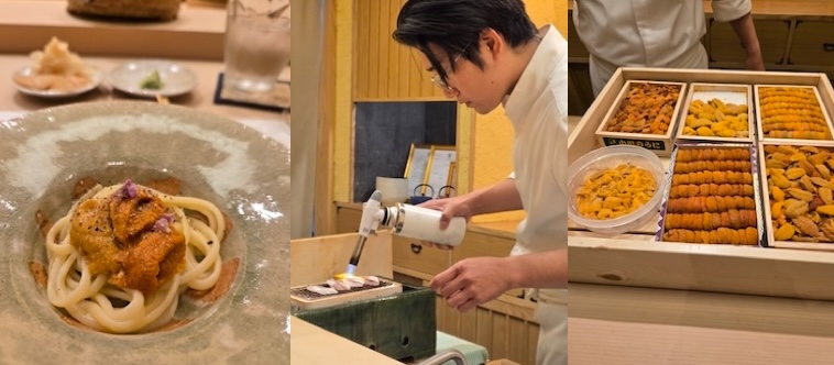 I was in Japanese culinary heaven the other night when I discovered through my Thai food guru, Nong, the most wonderful sushi restaurant specialising in my favourite food, uni (or sea urchin.) A small 10 seater counter where the chef just keeps making sushi as he pleases and tops them off with uni from all over Japan. The experience was so mind blowing, I am still dreaming of it!